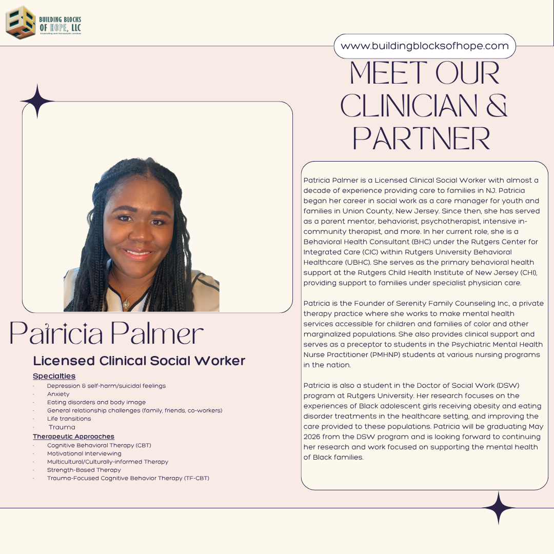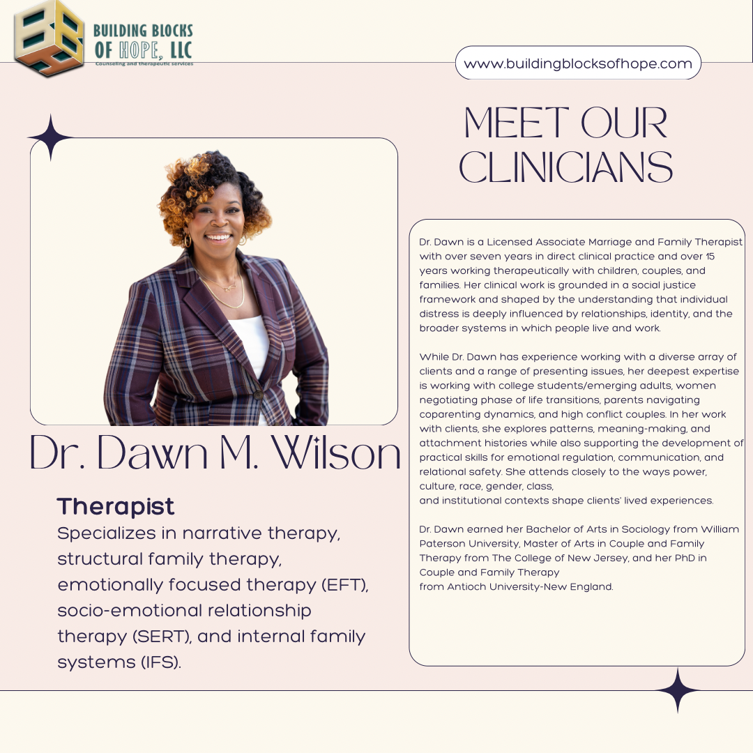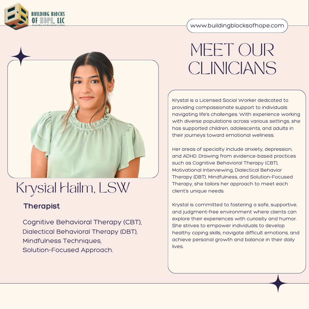 At Building Blocks of Hope, we are firm believers in the transformative power of connection and understanding. Our dedicated team is here to guide you on your path to mental wellness, offering personalized therapeutic services tailored to meet your individual needs. Together, we can foster a safe environment for healing and personal growth.