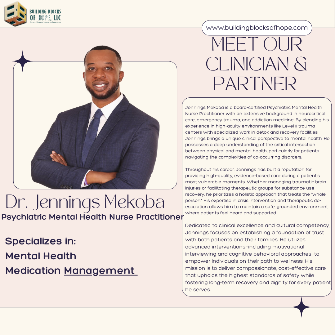 At Building Blocks of Hope, our team is made up of compassionate and skilled professionals who are dedicated to providing the highest quality mental health and therapeutic services. Each member brings unique expertise and a heartfelt commitment to supporting our clients on their journey to healing and growth.